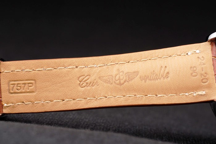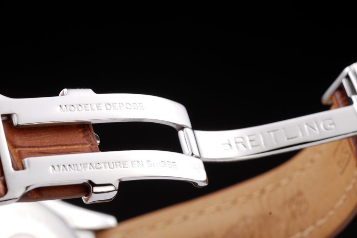 Armband: Brown Krokolederarmband mit Patent weißen Nähten und Wärme geprägt Breitling Gravuren und gravierten Edelstahl falten Verschluss mit Breitling logo auf top