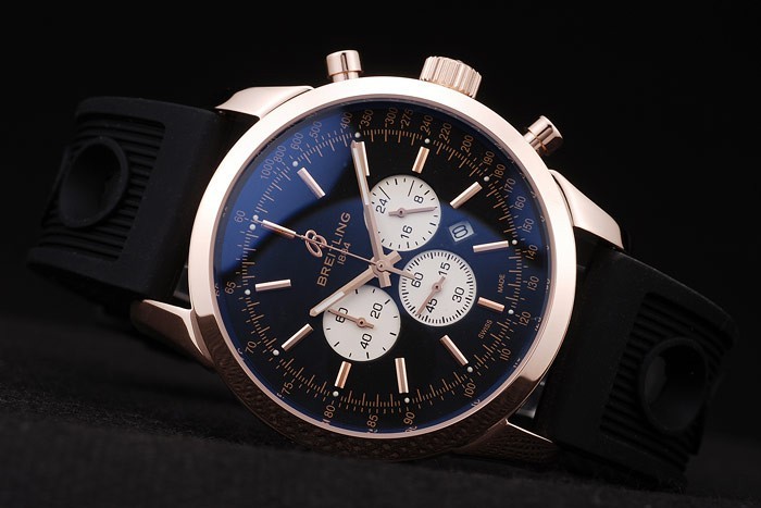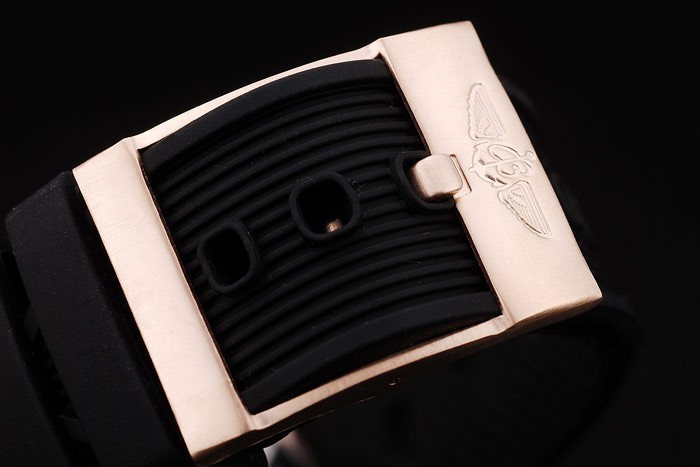 Armband plattiert: Schwarzes Kautschukband mit Breitling logo graviert Rose vergoldet Haken-Schnalle clasp