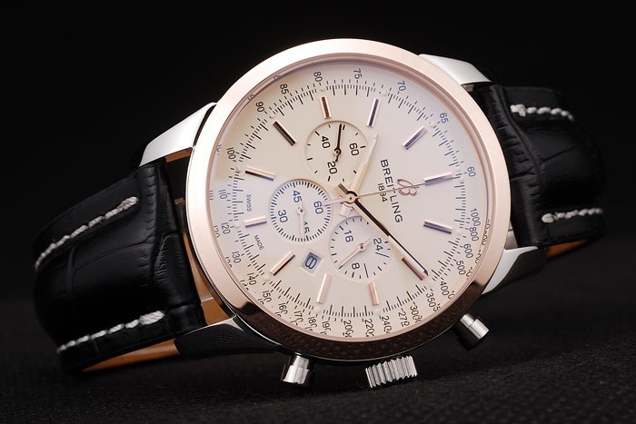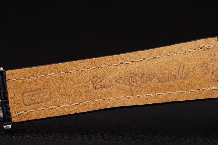 Armband: Hitze Breitling schwarzem Krokolederarmband mit weißen Fadenheftung und einer Breitling-Logo geprägt graviert Einfalt-rostfreiem clasp